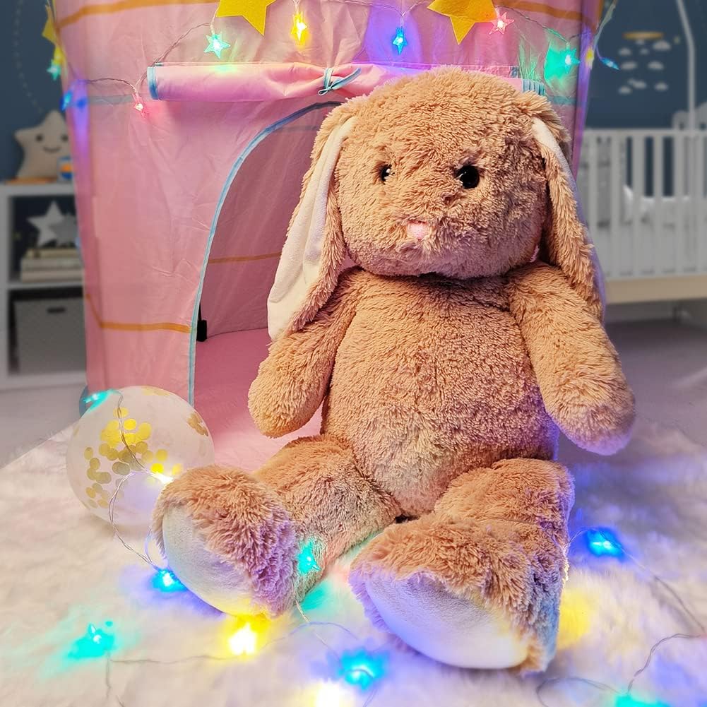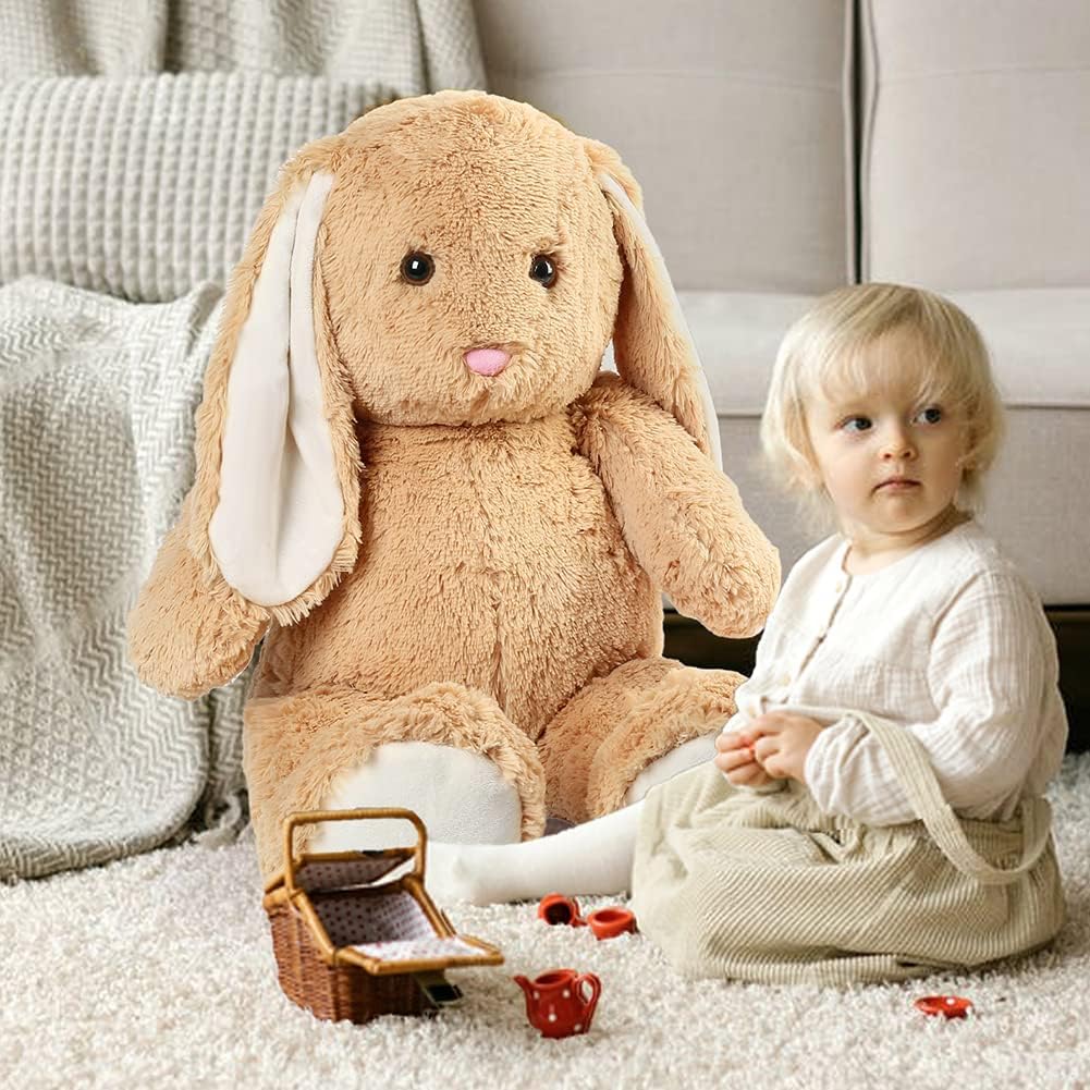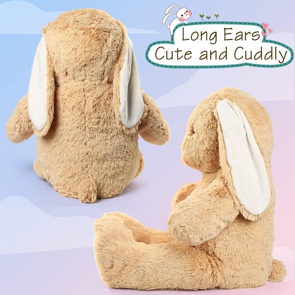 - CUTE CUDDLY BUNNY PLUSH: This jumbo rabbit stuffed animal plush toy features signature eyes, long floppy ears and fluffy tail. The eyes and tailor nose are secured tightly so they can’t be detached with normal use and play. Surface-washable