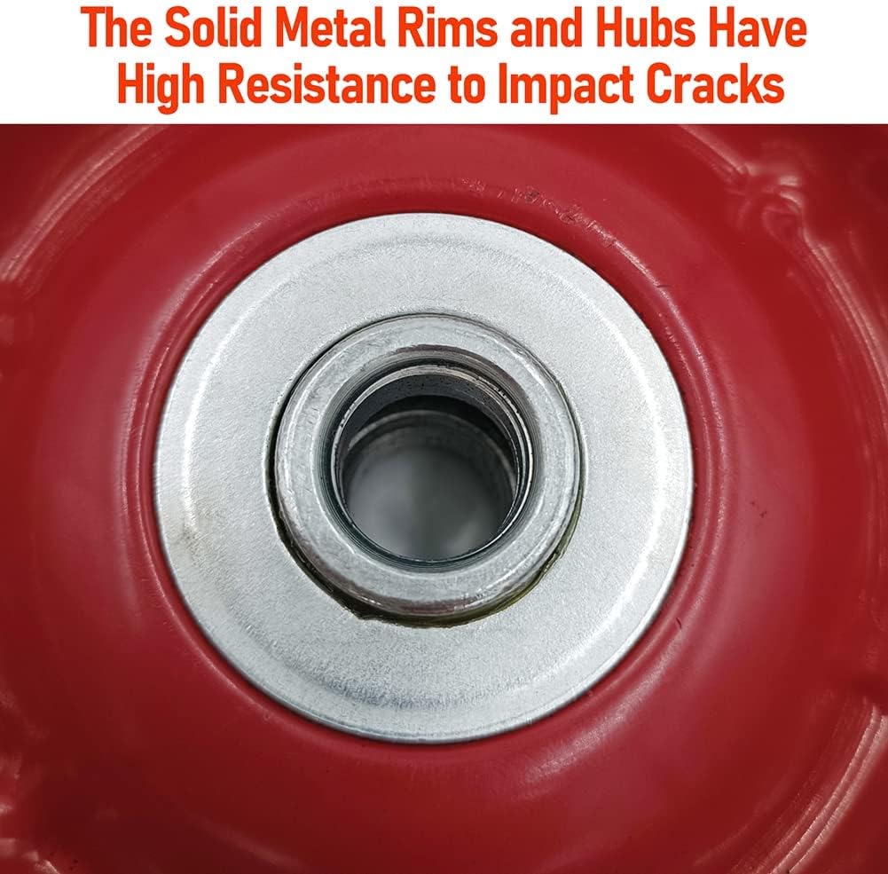 - HIGH QUALITY: Our tires are made from natural solid hard rubber and premium-quality steel. With thicker rubber walls, our tire will provide optimum shock absorption even on bumpy roads. The solid metal rims and hubs have high resistance to impact cracks