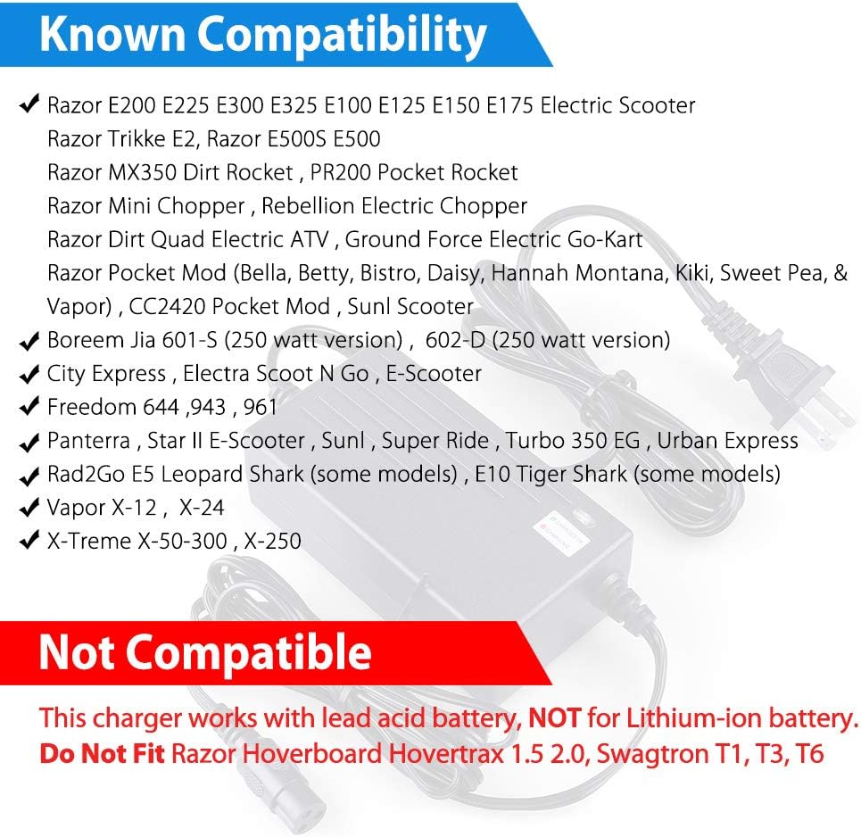 LotFancy 24V 2A Scooter Battery Charger for Razor MX350 Dirt Bike, E300, E200, E100, E125, E150, PR200, E175, E500, CC2420, Pocket Mod, UL Listed, Fast Charge