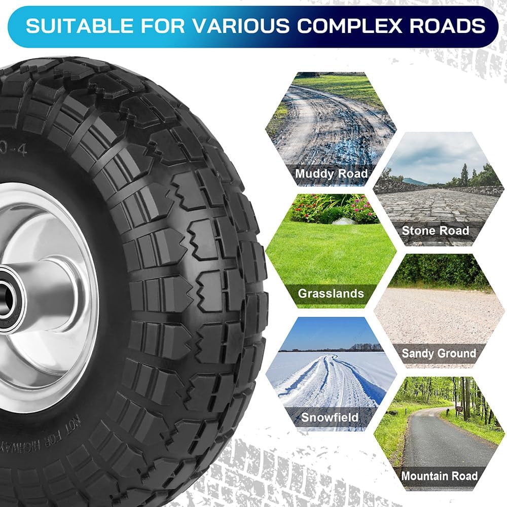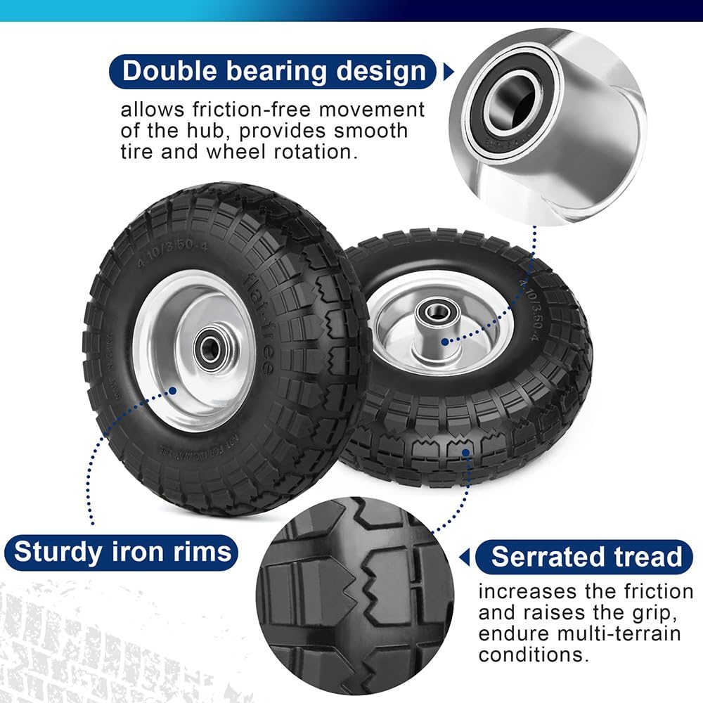 LotFancy 4.10/3.50-4” Tire, 2 Pack 10” Utility Tire for Dolly Hand Truck Garden Carts