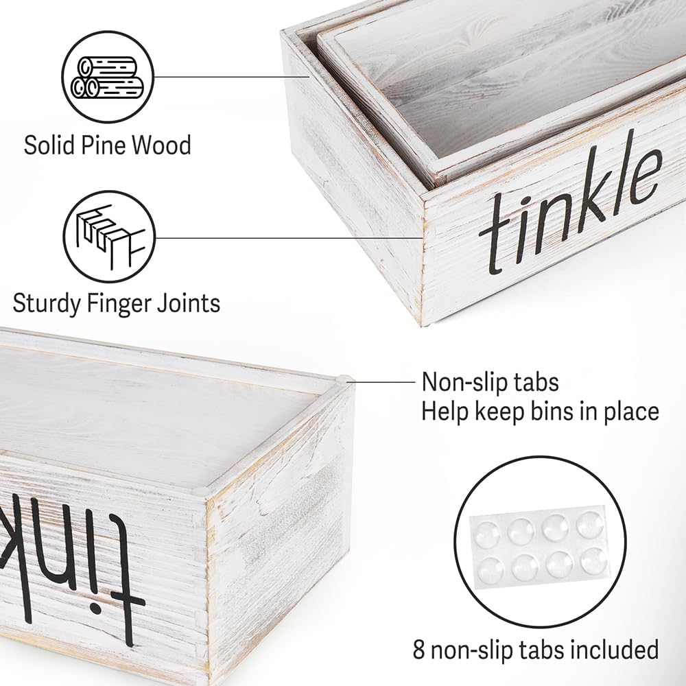 - Made of Natural Wood: This toilet paper holder box is made of solid pine wood which won't splinter or chip; The whitewash paint is environmentally friendly, and the painted saying will not peel; The farmhouse style texture and color makes these a great bathroom décor addition