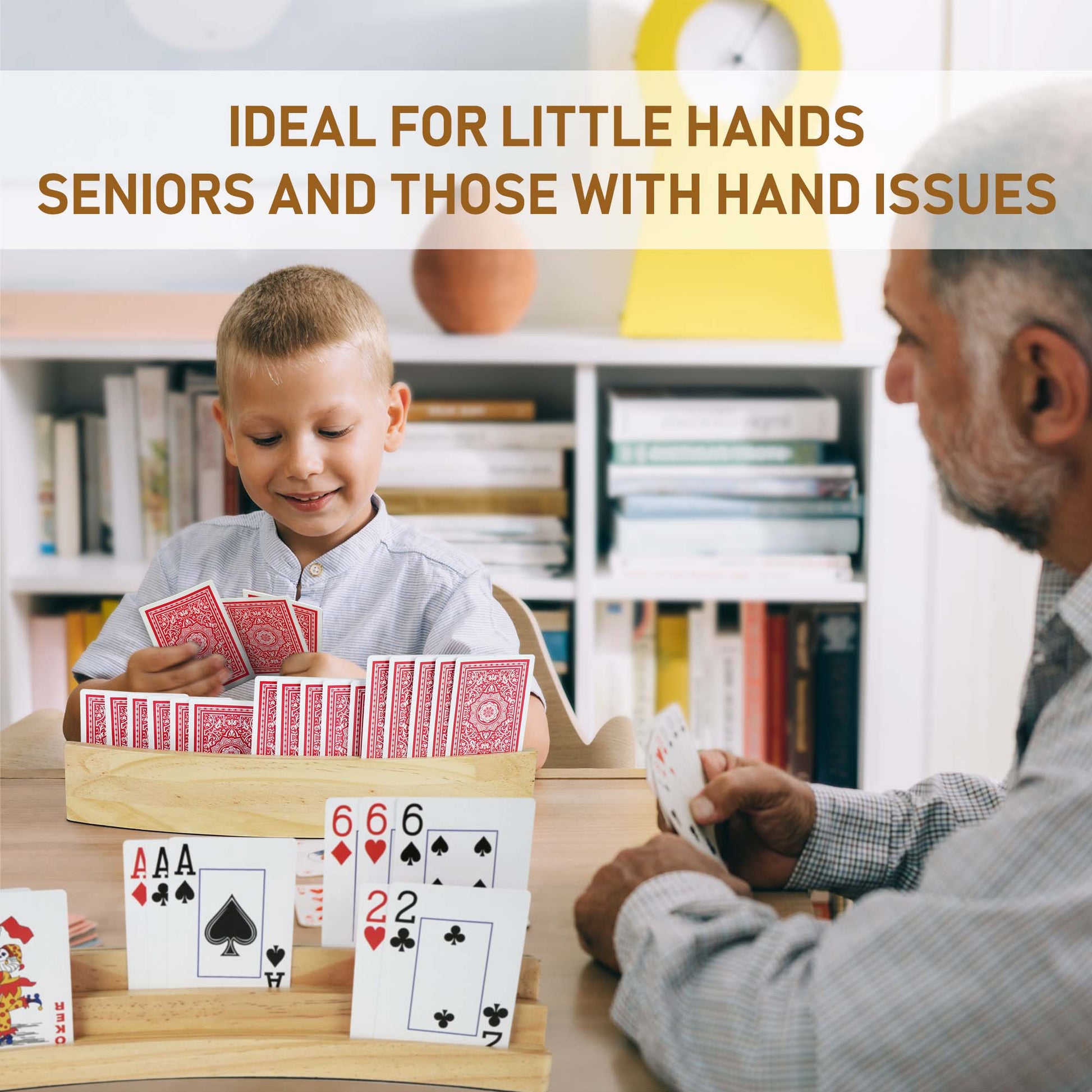 - HANDS FREE CARD HOLDER: Our playing card racks are great for game with large quantities of cards; Ideal for little hands, seniors, those with arthritis, hand issues and those who want the convenience of playing hands-free