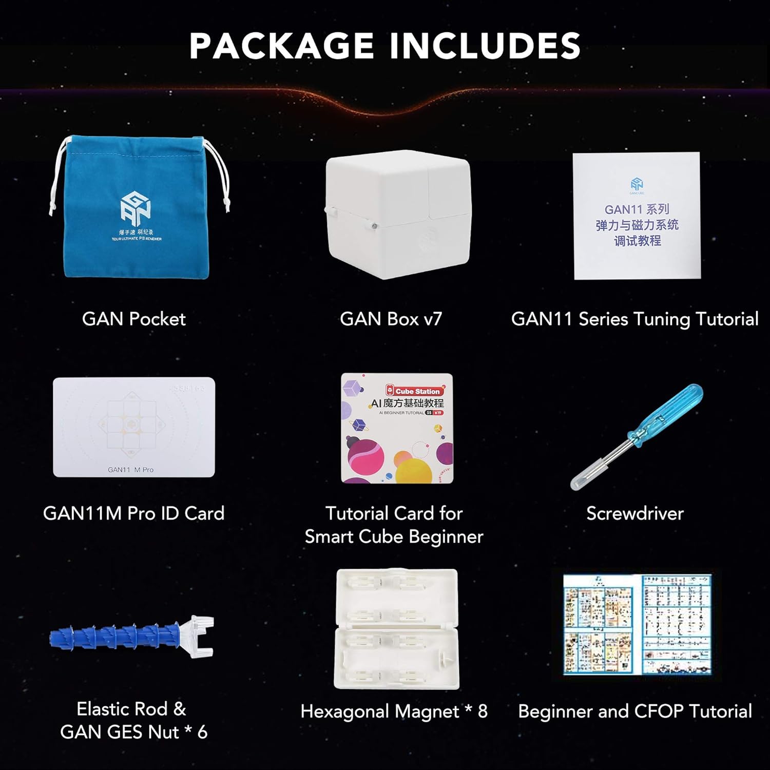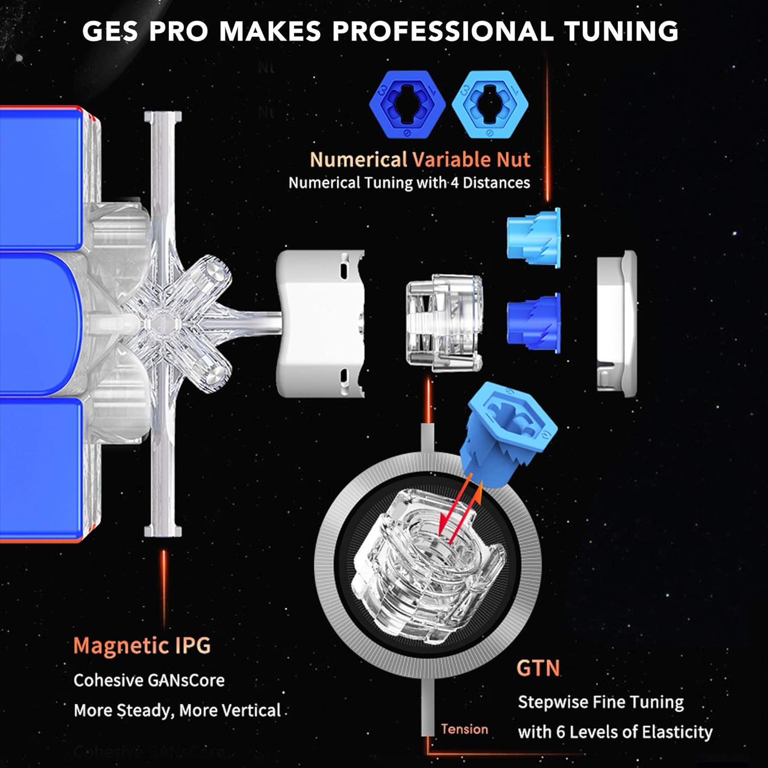 - Outstanding Features: Tuning versatility has always been a GAN cube’s prominent feature. The GAN 11 M Pro is no different. It is equipped with 7 levels of magnet strength, 4 kinds of nut distances and 6 levels of elasticity. Giving you 168 configurations altogether. Step-by-step instructions included!