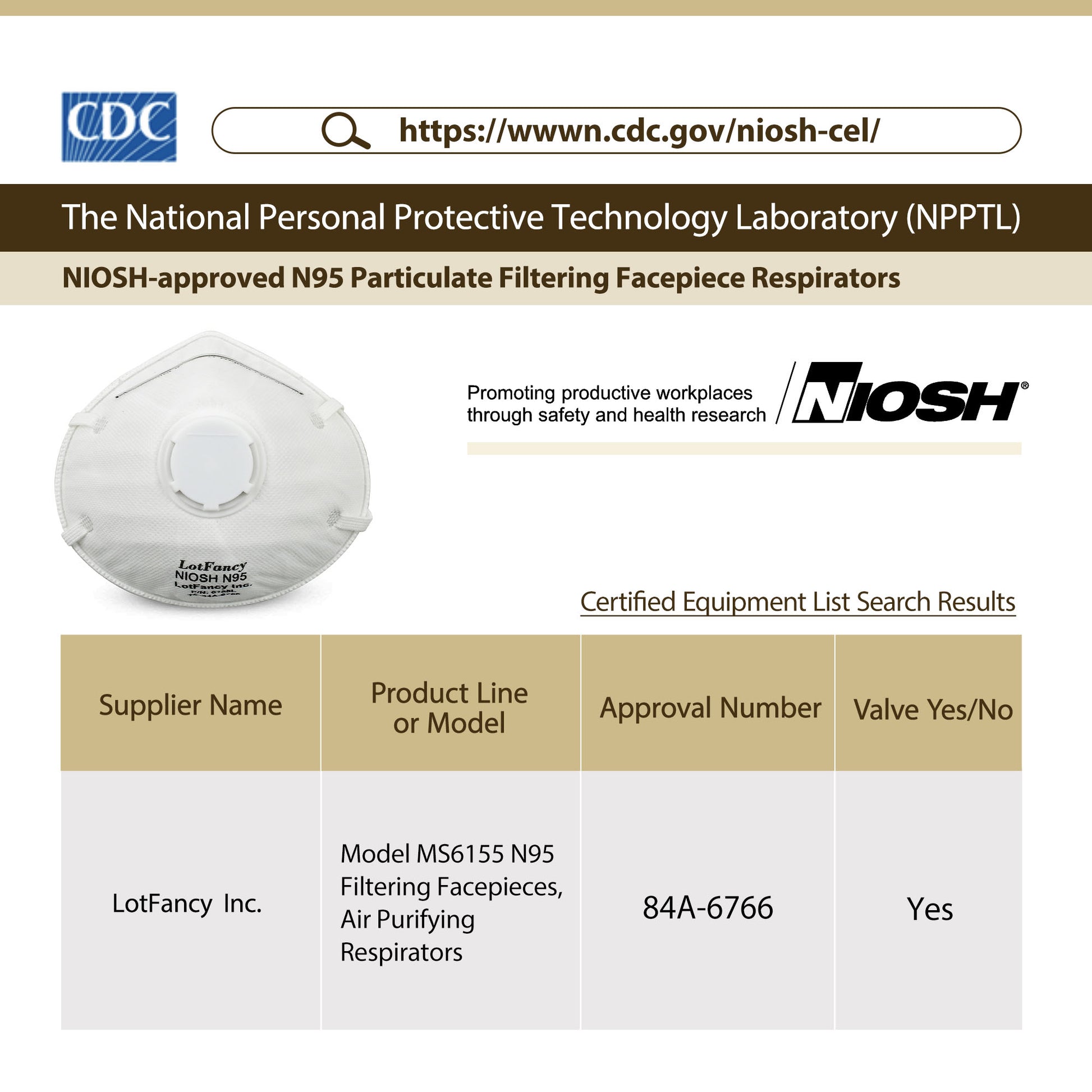 - NIOSH N95 CERTIFIED: 20PCS NIOSH N95 standard dust mask efficiently filters 95% of airborne particles free of oil, protection against fine dust, solid and liquid particles, against pm 2.5 air pollution, smog, smoke, suitable for home and professional use, indoor or outdoor use