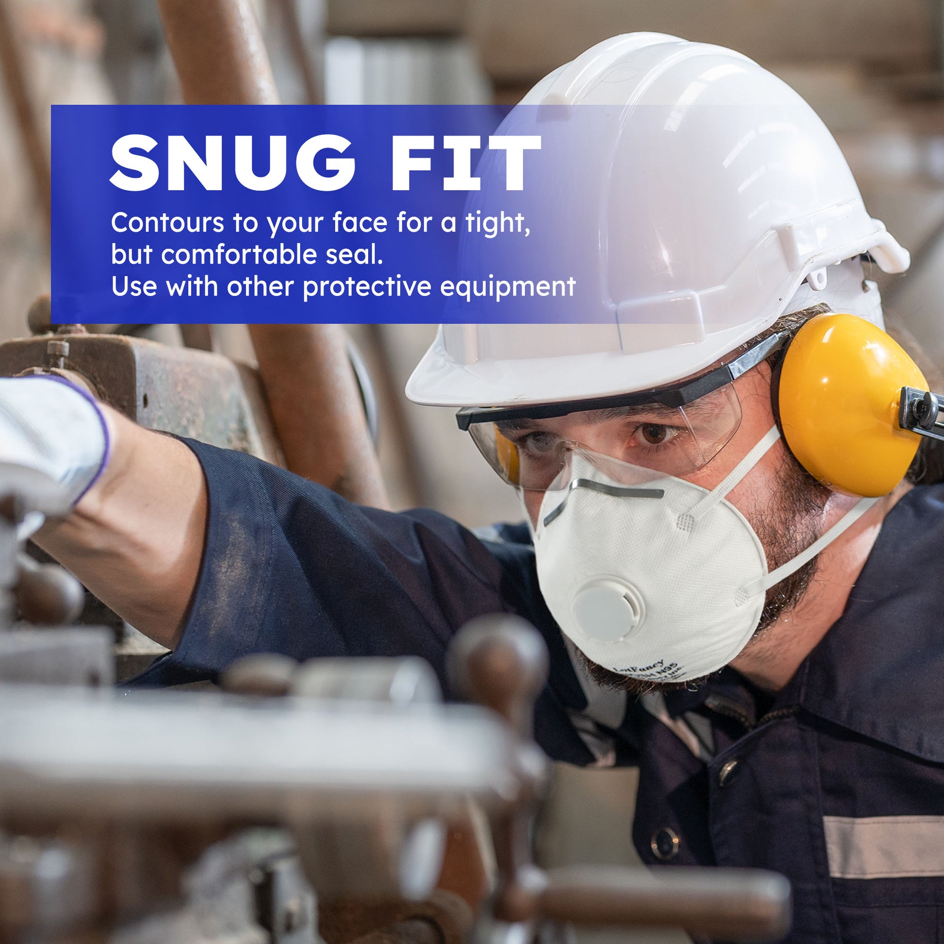 - CUSTOM-FIT DESIGN: Head Straps Design Filter Mask is comfortable and adaptable to any face shape, even when used with other personal protective equipment; Soft nose clip and two adjustable elastic head straps create a secure seal for maximum protection, eliminate the pressure behind the ears