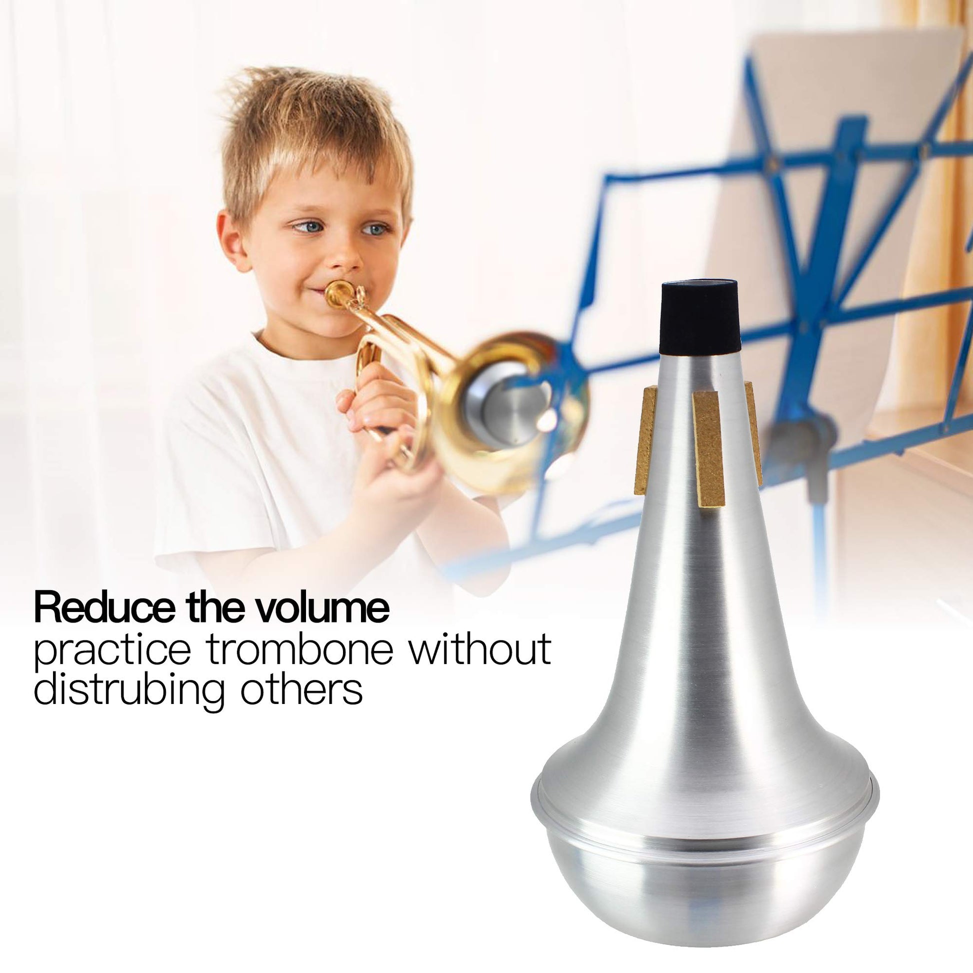 Details: The trombone mute is made of high-quality aluminum and cork, crafted for durability and long-lasting use. The trombone straight mute allows you to warm up quietly and practice silently at home, no worry about disturbing your neighbors, family members or pets. The bell-shaped contour of trombone mute makes them a perfect acoustical match to the trombone, produces a clear mute sound at any volume and performs instantly in all registers. The brass trombone mute is a must for all trombone players.Easy to use, perfect for classical orchestral playing, big band or any other setting where a trombone straight mute is required.Extremely lightweight. Perfect for solo trombone playing or blending in a orchestral trombone section with different brands of straight mutes. The cork adhere perfectly to the mute and grip the inside of your trombone bell without the fear of it falling out. Cork Care Tips: If you grease the cork when use the mute, the trombone straight mute will get fixed to the bell much easier. The oil can also save the cork from crumbling, so we suggest you to grease the cork regularly. Package included: 1 x Trombone Straight Mute