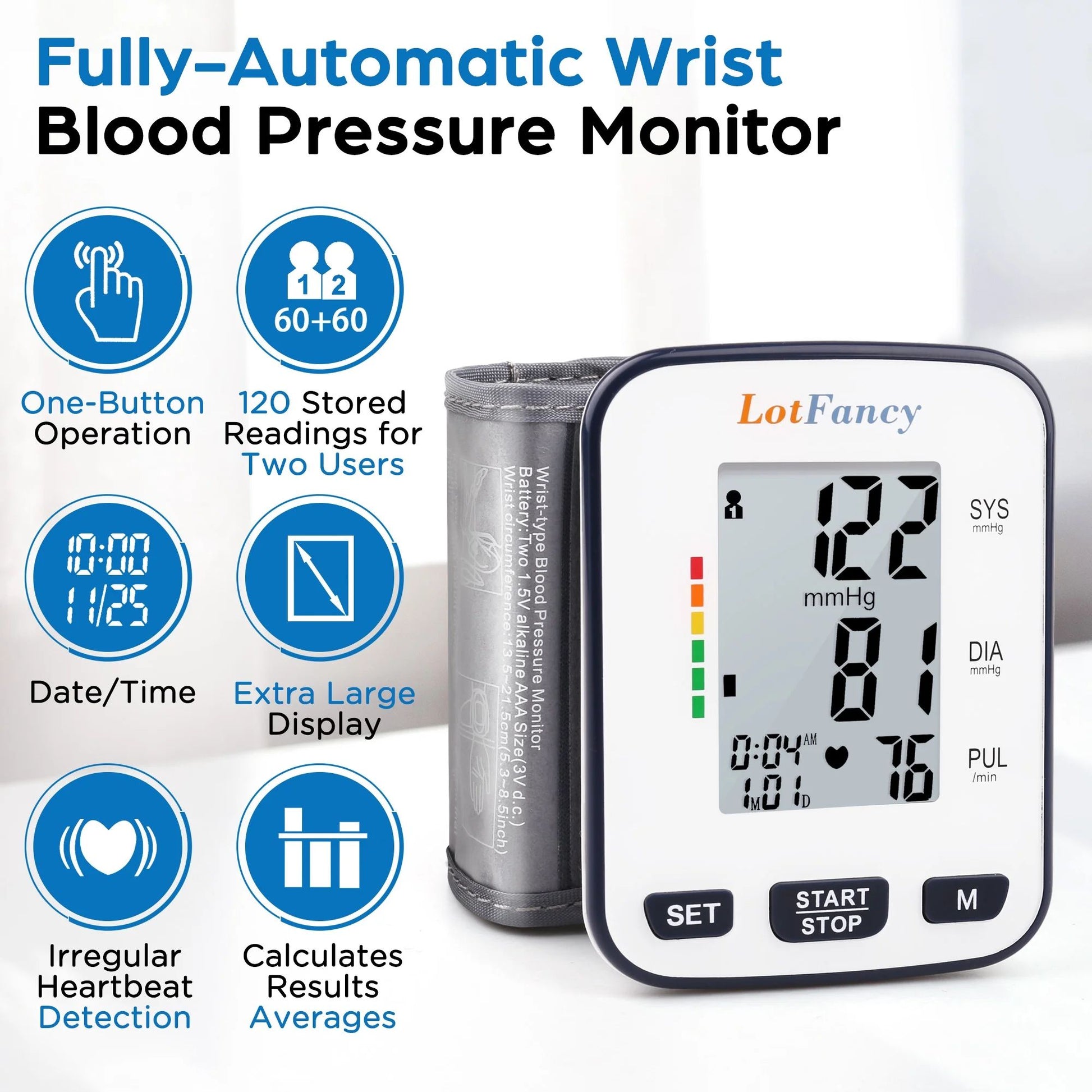 LotFancy Blood Pressure Cuff Wrist, Wrist Blood Pressure Monitor for Home Travel Use