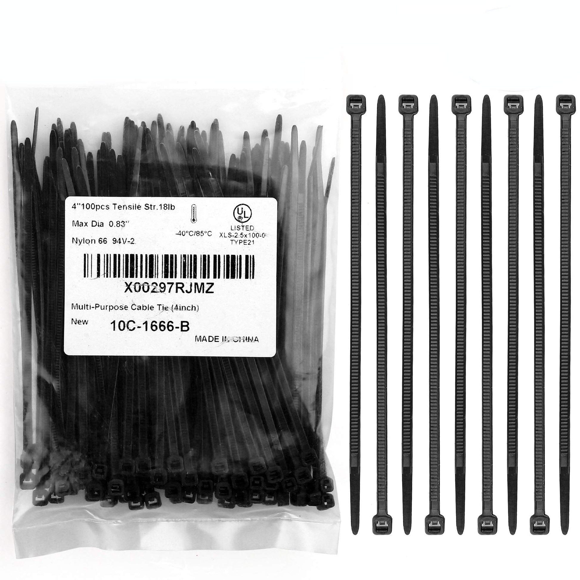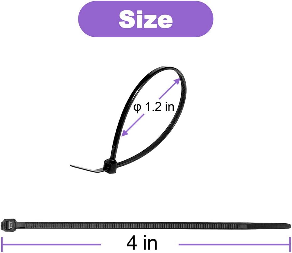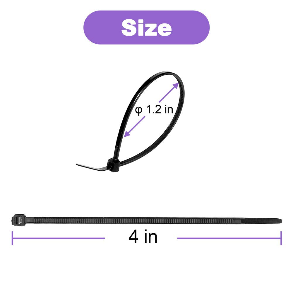 - Valuable Package: 4-inch bulk zip ties black 100 pieces in poly bag, Length-100mm (4”), width:2.5mm (0.1”), max bundle diameter:0.83”