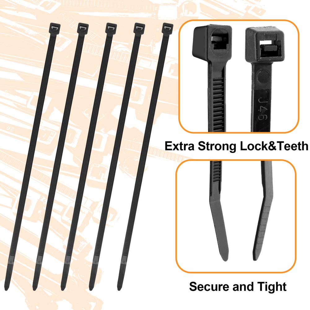 - Heat & UV Resistant: The nylon cable ties work through -40 to 85 degrees C or -40 to 185 degrees F and are rated with an 40lb tensile strength; Increase the tensile strength by using two or more together in a row
