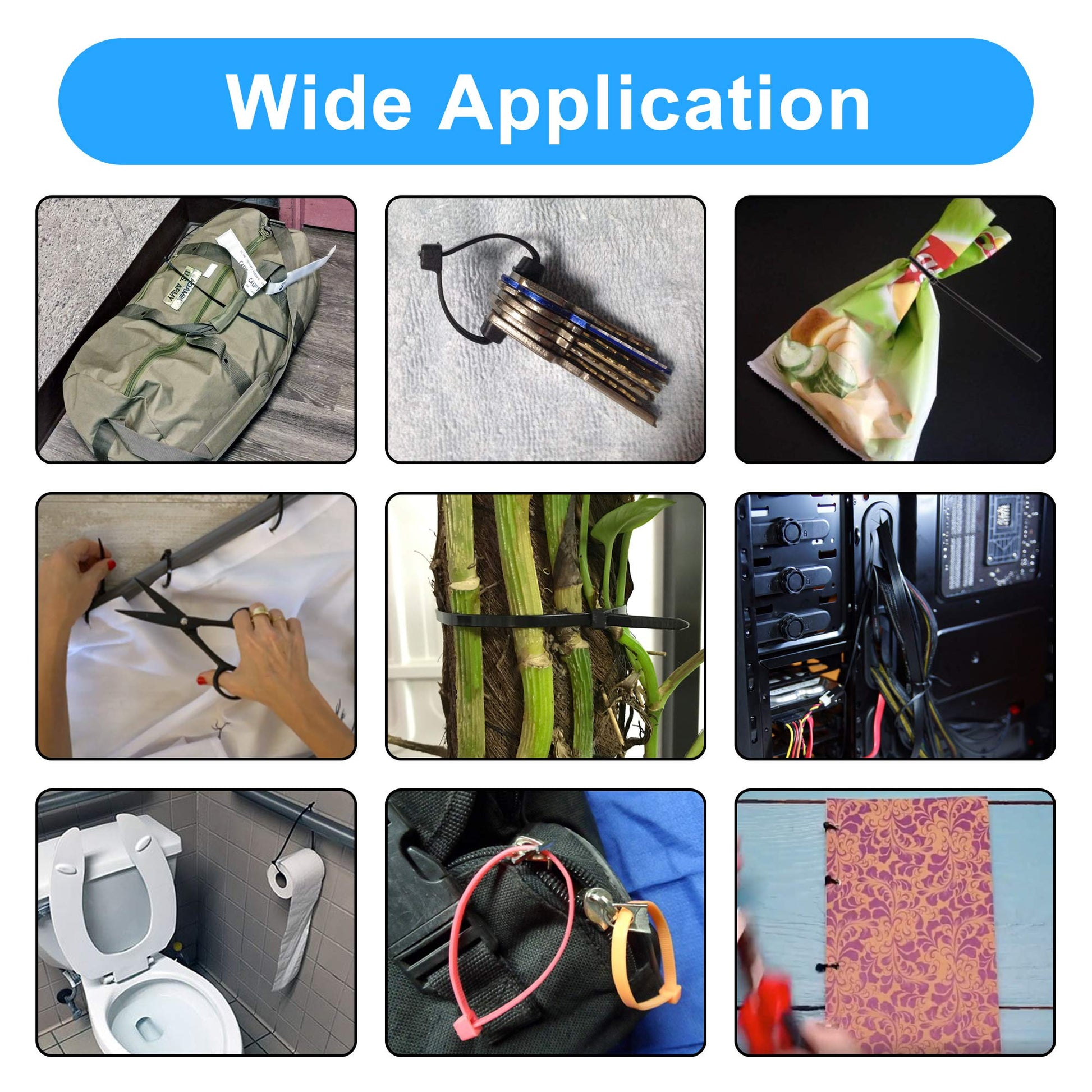 - Versatile Uses: These reusable cable ties is not only perfect for gardening fence fixing, but also great for home use, Shower curtain hook, keychain, organize wires, rescue broken zipper, snack seal